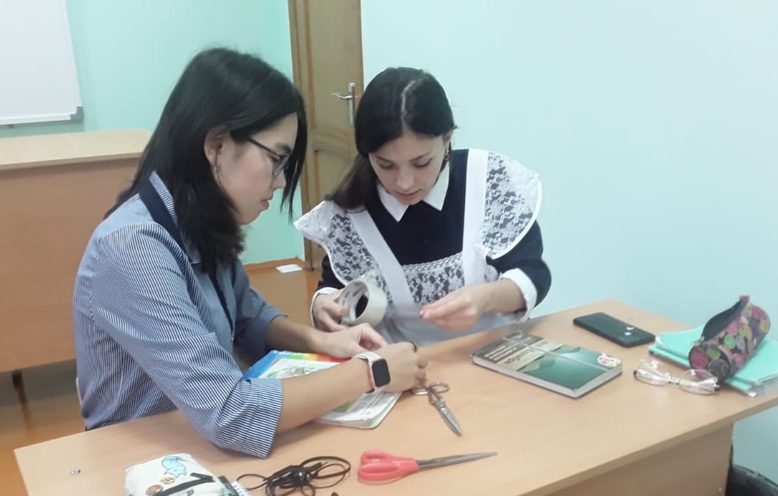 Беҙҙең мәктәптә бына ике тиҫтә йылға яҡын китапханасы булып Тәнзилә Әхәт ҡыҙы Буранова эшләй. Ул үҙ эшенә бик яуаплы ҡарай, балаларҙы ла, китаптарҙы ла бик ярата. Бына бөгөн дә ул уҡыусылар менән бергә иҫке, әммә кәрәкле китаптарға икенсе һулыш бирҙе.