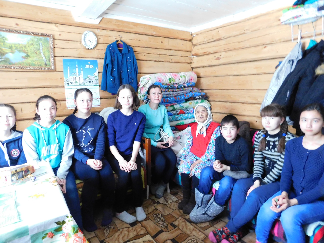 Хәйриямал инәй Йәғәфәрова – ауылыбыҙҙың иң оло кешеләренең береһе. Тиҙҙән ул үҙенең 90 йәшен билдәләйәсәк. Мәктәптең 7-се класы уҡыусылары Афғанстан Республикаһында хәрби бурысын үтәгәндә батырҙарса һәләк булған Азамат Фәзулла улы Йәғәфәровтың әсәһе Хәйриямал инәйҙең өйөндә булып, уның хәлен белеп ҡайттылар. Оло йәштә булыуына ҡарамаҫтан, инәй бик теремек. Балалар менән алсаҡ аралашты, бала сағы, колхозда эшләү осоро, балалары тураһында һөйләне. Балалар уның хәтирәләрен иғтибар менән тыңлап, матур тәьҫораттар менән ҡайттылар.