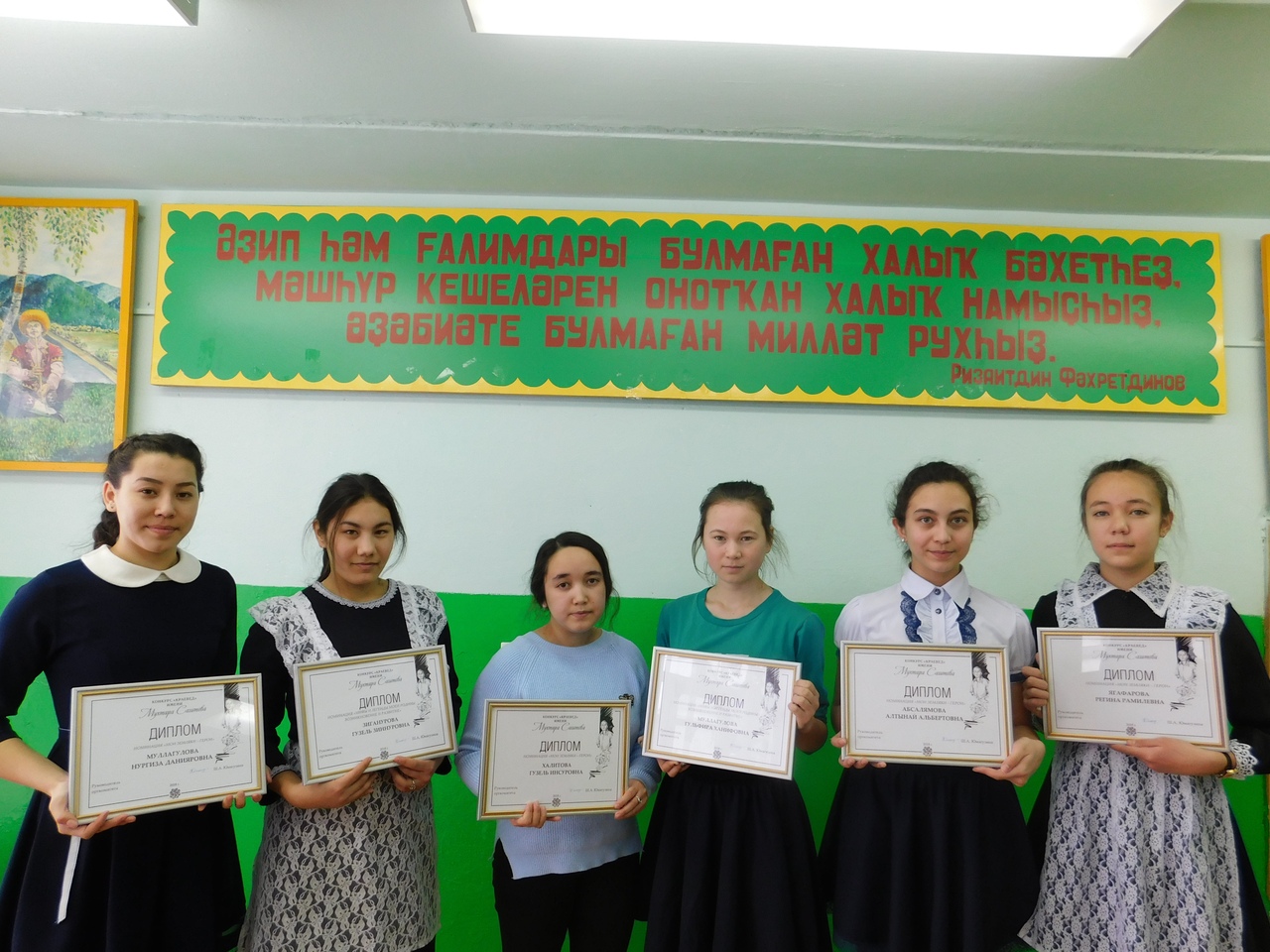 14 декабрь район мәҙәниәт һарайында билдәле фольклорсы - ғалим, С. Юлаев исемендәге дәүләт премияһы лауреаты Мөхтәр Сәғитовтың хәтер кисәһе үтте. Ғалимдың тыуыуына 85 йыл тулыуға арналған сарала, Ишемгужина Лилиә Самат ҡыҙы етәкселегендә, беҙҙең мәктәп уҡыусылары ла бик әүҙем ҡатнашып, ҙур еңеүҙәргә өлгәштеләр. Бына улар: Хәлитова Г. (11 кл.), Йыһанурова Г. (10 кл.), Муллағолова Н. (9 кл.), Муллағолова Г. (8 кл.), Әбсәләмова А. (8 кл.), Йәғәфәрова Р. (8 кл.). Улар "Тыуған яҡты өйрәнеүсе" исемле конкурста ҡатнашып дипломдар, Муллағолова Г. , Әбсәләмова А.,- китаптар, Йәғәфәрова Р.- мультиварка менән бүләкләнделәр. Афарин, уҡыусылар!