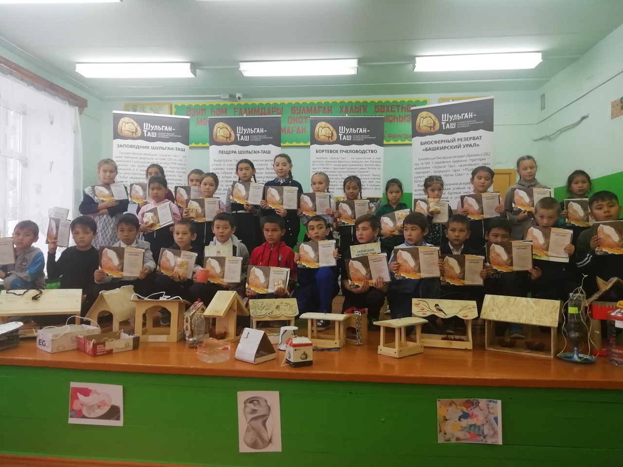 7 ноябрь көнө Иҫке Монасип мәктәбе уҡыусылары өсөн тағы бер иҫтәлекле сара үтте. Был сараны ойоштороусылар -"Шүлгән -таш "ҡурсаулығы. 1ноябрҙән 7 ноябргә тиклем 1-4-се кластар араһында "Ҡоштарҙы ашатығыҙ!" акцияһы сиктәрендә "Иң яҡшы тағараҡ" конкурсы иғлан ителгәйне. Конкурстың маҡсаты: уҡыусыларҙа ҡоштарға иғтибар, улар менән һоҡланыу хисе тәрбиәләү, ярҙам итеү теләге уятыу. Ҡурсыулыҡ белгестәре: Хәйбуллина Ләлә, Ғәлина Раушания, Ноғоманова Айһылыу апайҙар сара үтәсәк залға ҡурсыулыҡ тураһында мәғлүмәтле күргәҙмә материалдар, уҡыусыларҙың ижади эштәрен ҡуйып алдан әҙерләп ҡуйҙылар. Мәмерйәнән беҙгә ҡунаҡҡа килгән мамонт уҡыусыларҙы бик йылы ҡаршы алды. Хатта ҡайһы берҙәре уның эргәһенә барырға ҡыймайыраҡ та торҙолар. Йәтеш кенә мамонт менән бөтә уҡыусылар ҙа бик теләп фотоға төштө. Сараның тәүге өлөшөндә ҡурсыулыҡ белгестәре уҡыусылар менән "Һин йәшәгән ер" темаһына йәнле әңгәмә үткәрҙе, уҡыусыларҙың белемдәрен тикшерҙе. Был әңгәмәлә балалар һис бер тартыныуһыҙ апайҙар менән ихлас аралаштылар, үҙҙәренең белемдәрен күрһәттеләр. Хәлитов Ғәлинурҙың төплө яуаптары бөтәбеҙҙе лә хайран ҡалдырҙы. Был әңгәмә барышында балалар сүп -сарҙың беҙҙең һаулыҡҡа һәм бар тереклеккә ни тиклем зыян килтереүе хаҡында белде, фәһемле кино ҡараны. Төрлө материалдан булған сүп -сарҙы айырыу буйынса уйын ойошторолдо. Сараның икенсе өлөшөндә "Ҡоштарҙы ашатығыҙ!" исемле класс сәғәте үтте. Балалар ҡоштарға ниндәй аҙыҡ ашатырға, ҡасан ашатырға кәрәклеге тураһында бик күп мәғлүмәт алды, белемдәрен киңәйтте. Һәм иң тулҡынландырғыс мәл килеп етте. Үҙ эштәрен яратып башҡарған Ләлә, Раушания, Айһылыу апайҙар конкурсҡа йомғаҡ яһаны. Конкурсҡа 28 уҡыусы тағараҡ эшләп алып килгән. "Иң яҡшы тағараҡ" конкурсында Гран -приға Ҡотлобаева Асия, 1-се урынға Буранов Данис, 2-се урынға Хәлитова Гөлфинә менән Буранов Вәкил, 3-сө урынға Хәлитова Физәлиә менән Баймырҙина Зарина лайыҡ булды. Уларға ҡурсыулыҡтың почет грамоталары һәм иҫтәлекле бүләктәр тапшырылды. Актив ҡатнашҡан уҡыусыларға ла ҡурсыулыҡ хеҙмәткәрҙәре рәхмәт хаттары тапшырып үтте.Был саранан бер уҡыусы ла буш ҡайтманы. Бөтә балаларға ла, уҡытыусыларға ла бүләккә "Шүлгән-Таш" ҡурсыулығы тураһында мәғлүмәтле, ҡыҙыҡлы китаптар, буклеттар, 2020 йылға календарҙар тапшырылды.Ҡайһы бер уҡыусылар тағараҡтарын ҡурсыулыҡҡа бүләк иттеләр. Саранан балалар күтәренке кәйеф менән таралышты. Ошондай бай ,ҡыҙыҡлы ,фәһемле сара үткәргәндәре һәм иҫтәлекле бүләктәре өсөн "Шүлгән-Таш" ҡурсыулығы коллективына ҙур рәхмәтебеҙҙе еткерәбеҙ!