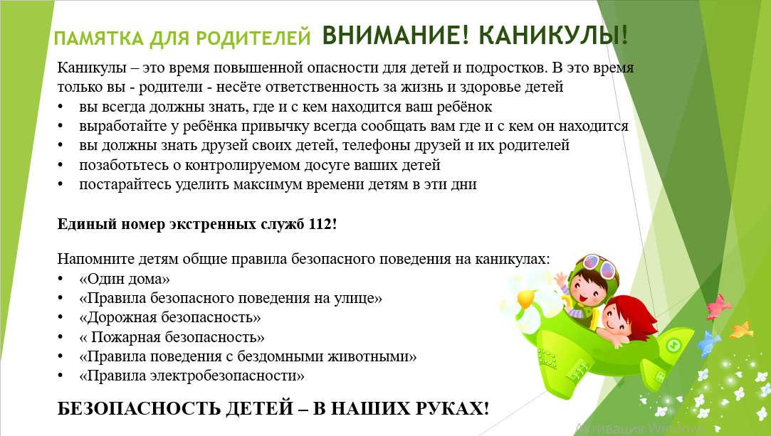 Обращения к родителям о безопасности детей в каникулярный период